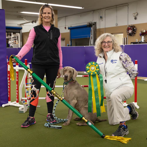 Weimaraners are the reason Jan and Mark met and became best friends, and eventually married! Weims and humans all reside together as family at About Time Acres and spend a lot of hours training and playing on the property.