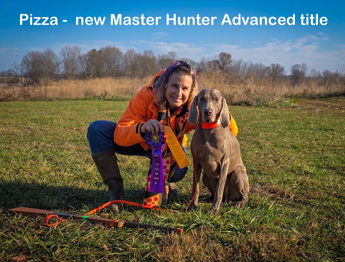 With this new Master Hunter title, Pizza earned her "VX2" (Versatile Excellent 2) rating from the Weimaraner Club of America. Versatility is something we place a high value in, so this makes us extra proud!