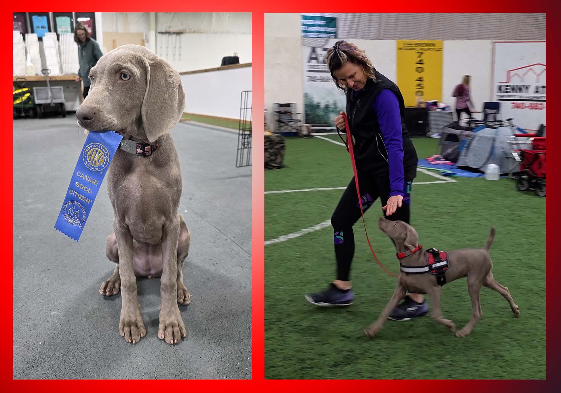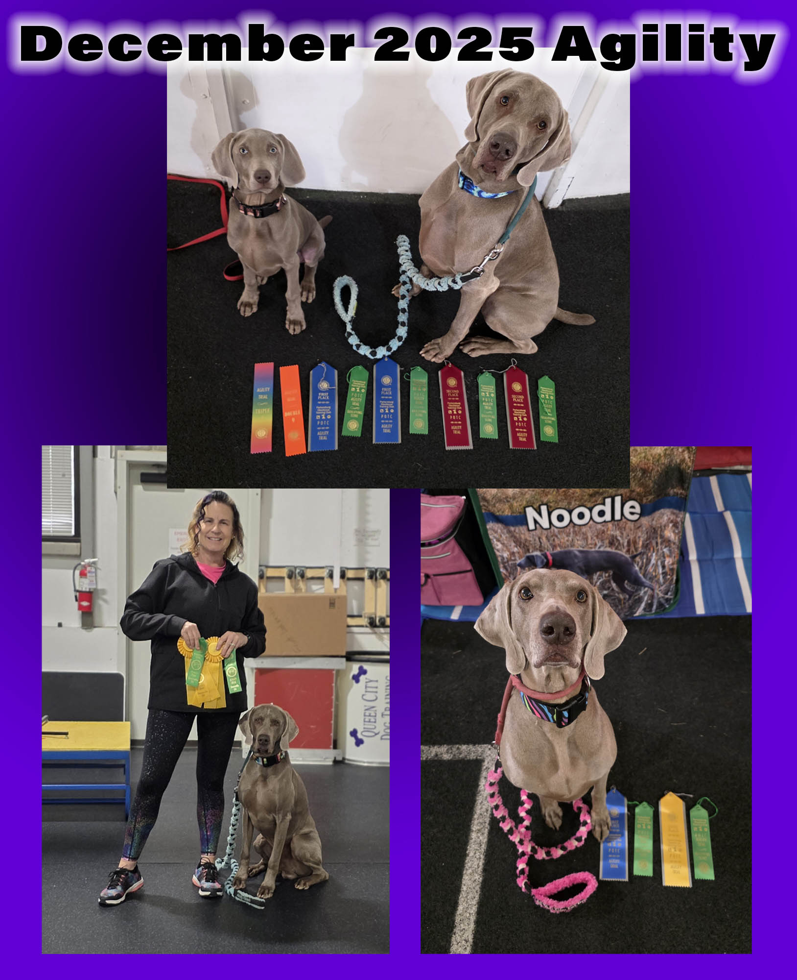 Noodle answered by getting her own double QQ #17 the next day with a first and second place finish. It was a great weekend of agility for the Weimaraner crew!