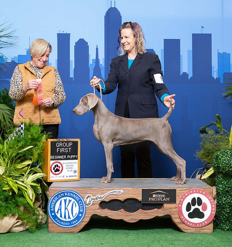 Noodle won her Field-Titled Bitch class at the 2025 Weimaraner National Specialty. She had the honor of not only winning the class, but also being the highest-titled in the field of all 100+ entries at the national specialty.