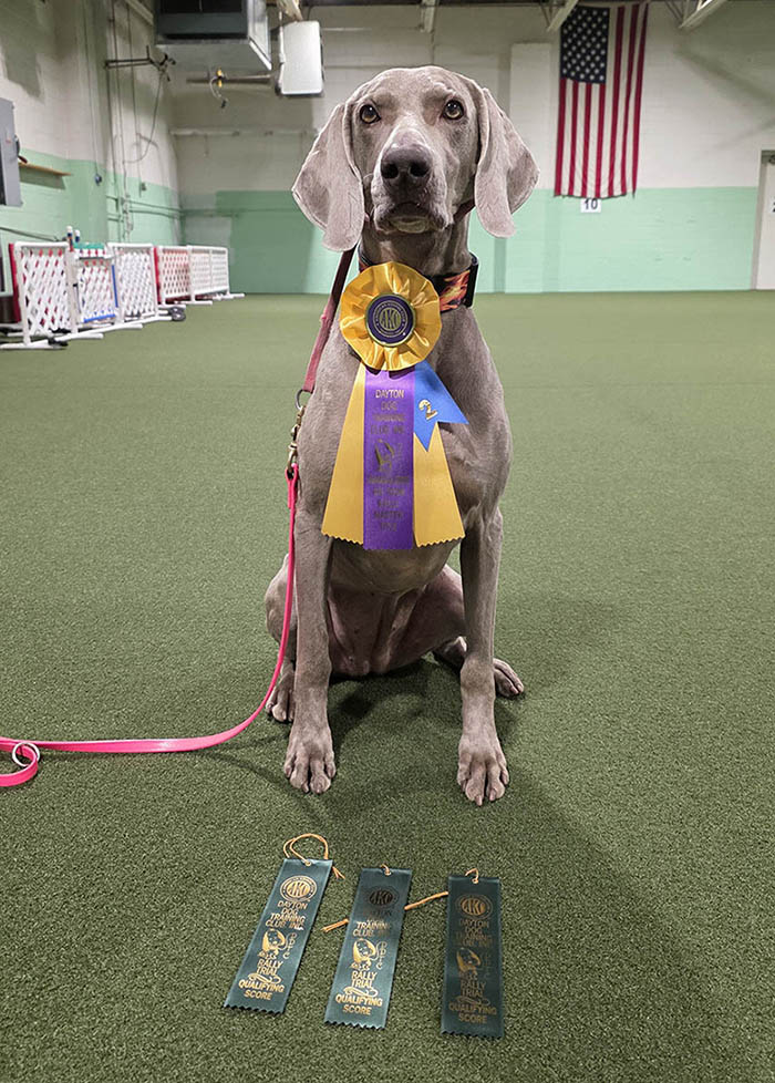 At the 2025 Weimaraner National Specialty, Dolphin earned a 3rd and 4th place out of 17 in Rally Novice to finish his RN title.